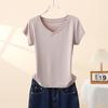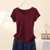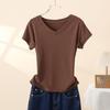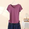 Ervaar de perfecte mix van comfort en stijl met ons Zomer Katoen V-Hals Korte Mouw Slankmakend Basis T-shirt. Dit t-shirt is gemaakt van zacht, ademend katoen en biedt een flatterende slim fit die je silhouet benadrukt.. Het effen patroon en minimalistische design maken het een veelzijdige garderobebasis, perfect voor elke casual gelegenheid.. De korte mouwen en V-halslijn voegen een vleugje elegantie toe, terwijl de lichtgewicht stof ervoor zorgt dat u koel blijft tijdens warme zomerdagen.. Ideaal om te combineren met je favoriete jeans of shorts voor een moeiteloos chique look.