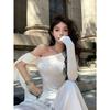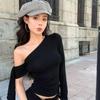 Onregelmatige Lint Off-Shoulder Top met Lange Mouwen Bodycon - Dames Lente Chic