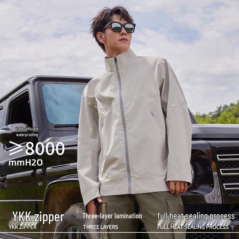 Stay protected and stylish in unpredictable weather with this trendy waterproof windbreaker jacket. Designed for both men and women, it features a stand-up collar to shield you from the wind during camping and mountaineering adventures. Crafted from durable polyester material, this jacket offers a solid pattern and is perfect for the autumn season. Its lightweight design ensures comfort, making it an essential addition to your outdoor gear.