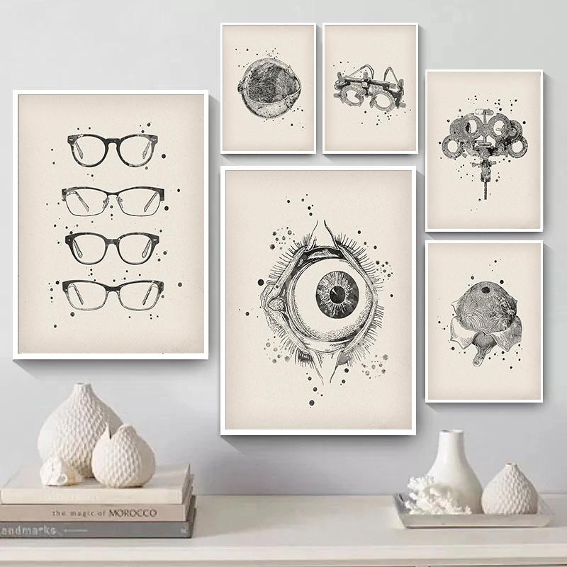Vintage Human Eye Anatomy Medical Education Poster Canvas Painting Wall Art Pictures Ophthalmic Clinic Home Decor Gift