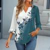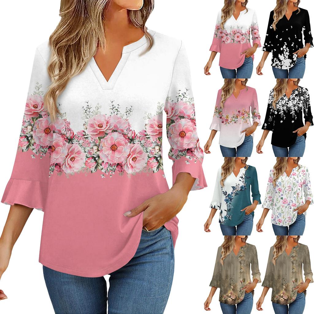 Tops met 3/4 mouw voor dames T-shirt Casual Uitlopende mouwen Print Tuniek V-hals Pullover Blouse