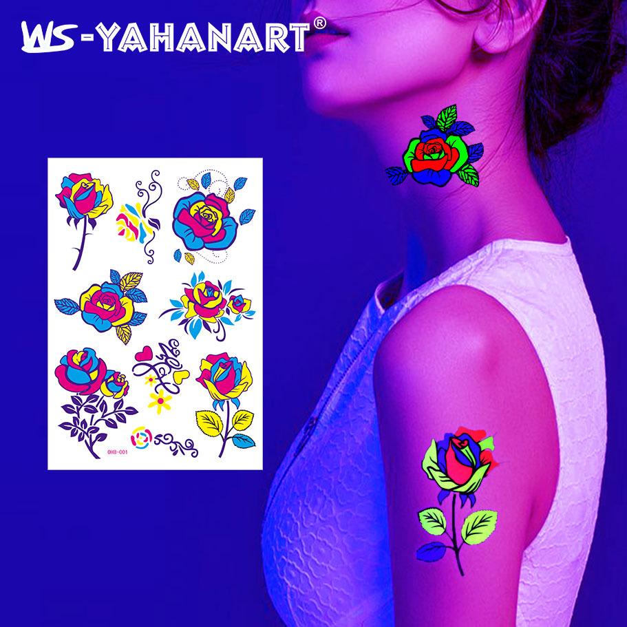 Creative Fluorescent Butterfly Face Tattoo Sticker Nightclub Bar Rose Sticker Flower Arm Waterproof Eco-Friendly Tattoo Sticker