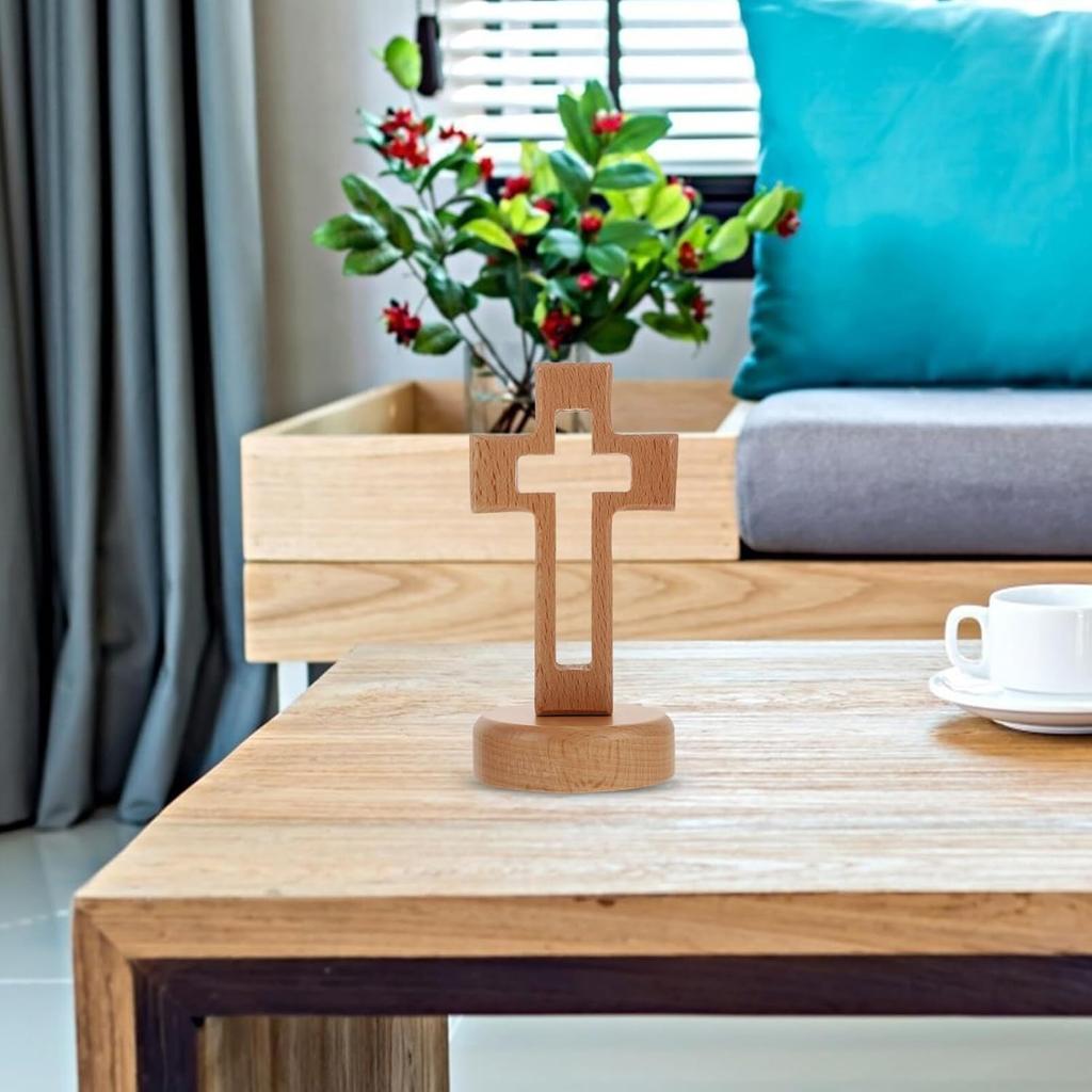 Veemoon Wood Standing Cross Wood Standing Cross Decor Wood Religious Table Alter Standing Table Cross Altar Cross with Stand Wooden Table Cross