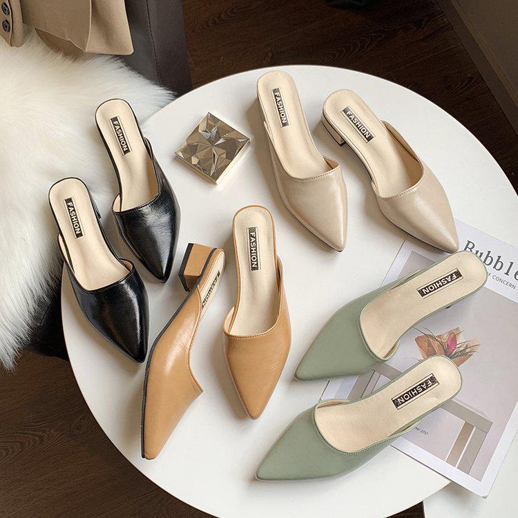 Dames 2023 Zomer Puntige Neus Middenhoge Hak Outdoor Muiltjes