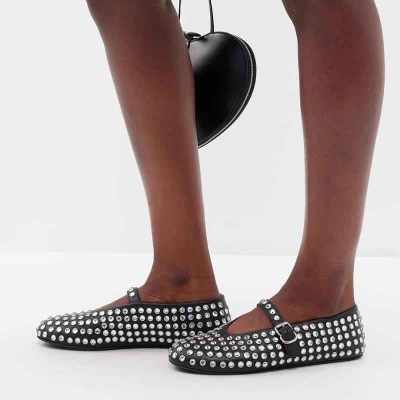 Grote Strass Klinknagel Enkelschoenen voor Dames met Gesp Ronde Neus Platte Ballerina's