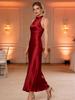 Perfect voor diverse gelegenheden, waaronder avondfeesten, dansevenementen, banketten en bruiloften, deze effen jurk is een veelzijdige toevoeging aan je garderobe.. Combineer het met opvallende accessoires zoals kettingen, armbanden, oorbellen, tassen, sandalen of hoge hakken om je look moeiteloos compleet te maken.