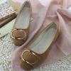 Nieuwe Mode Vierkante Neus Flock Dames Flats Lage Mond Instapper Lente Herfst Damesschoenen Metalen Ring Enkele Schoenen Vrouw WSH2443