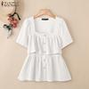 ZANZEA Women Square Collar Short Sleeve Layers Ruffled Hollow Casual Blouse