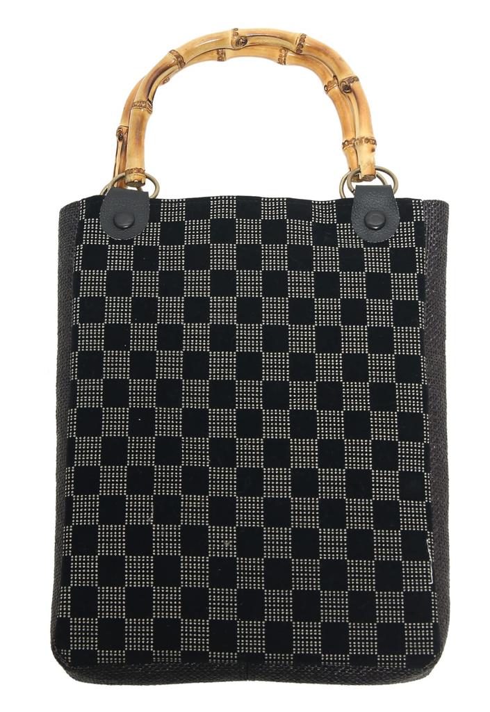 Hasegawa Shingen Bamboo with Inden Made in Japan Bag, Handles, Style, Men's, (Checkered Pattern)