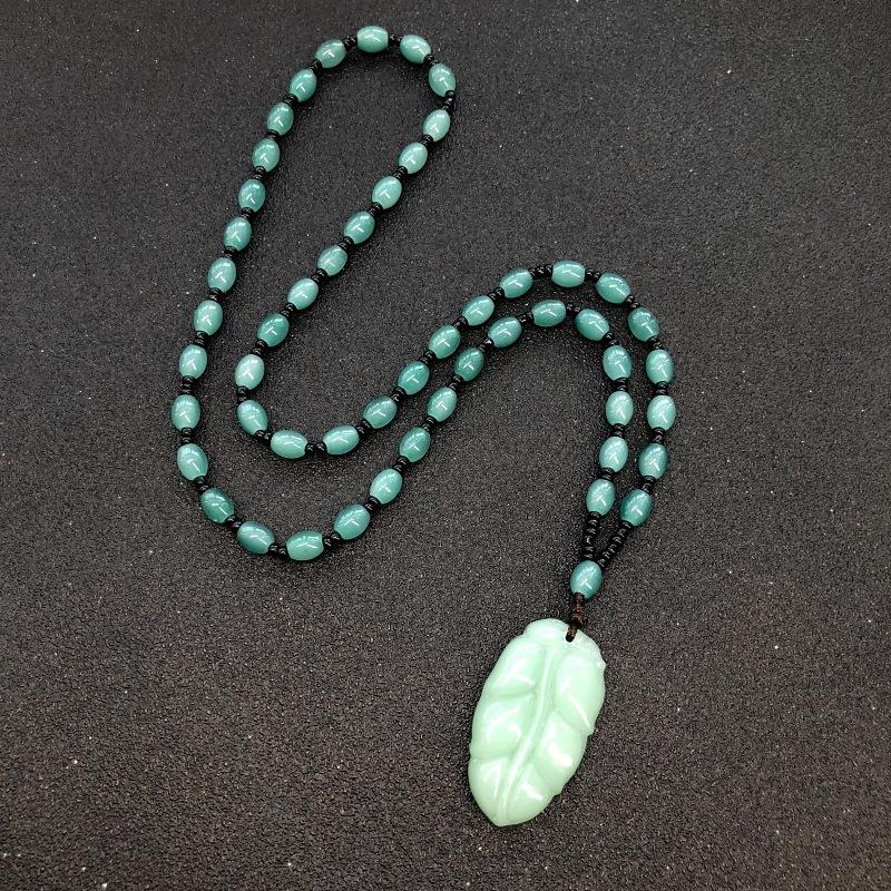 Retro eenvoudige imitatie jade lange ketting heren en dames veelzijdige trui ketting jadeiet kralen ketting hanger met sieraden
