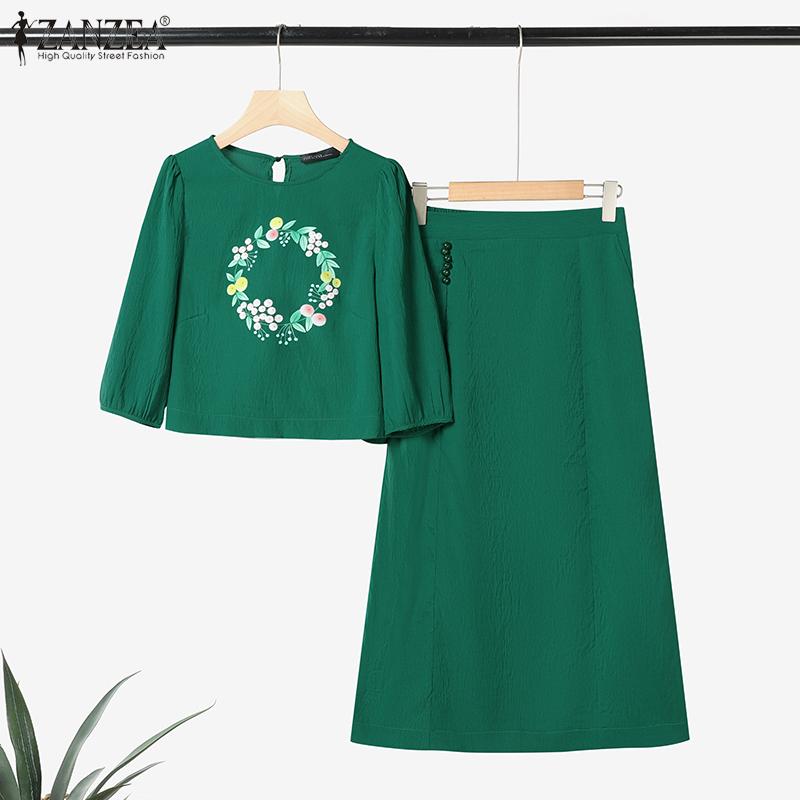 ZANZEA Women Half Sleeve Print Blouse and Long Skirts Casual Two Piece Suit Sets
