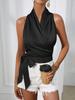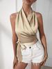 Dames Satin Wrap Top met Halternek - Lente/Zomer Mouwloos Strik
