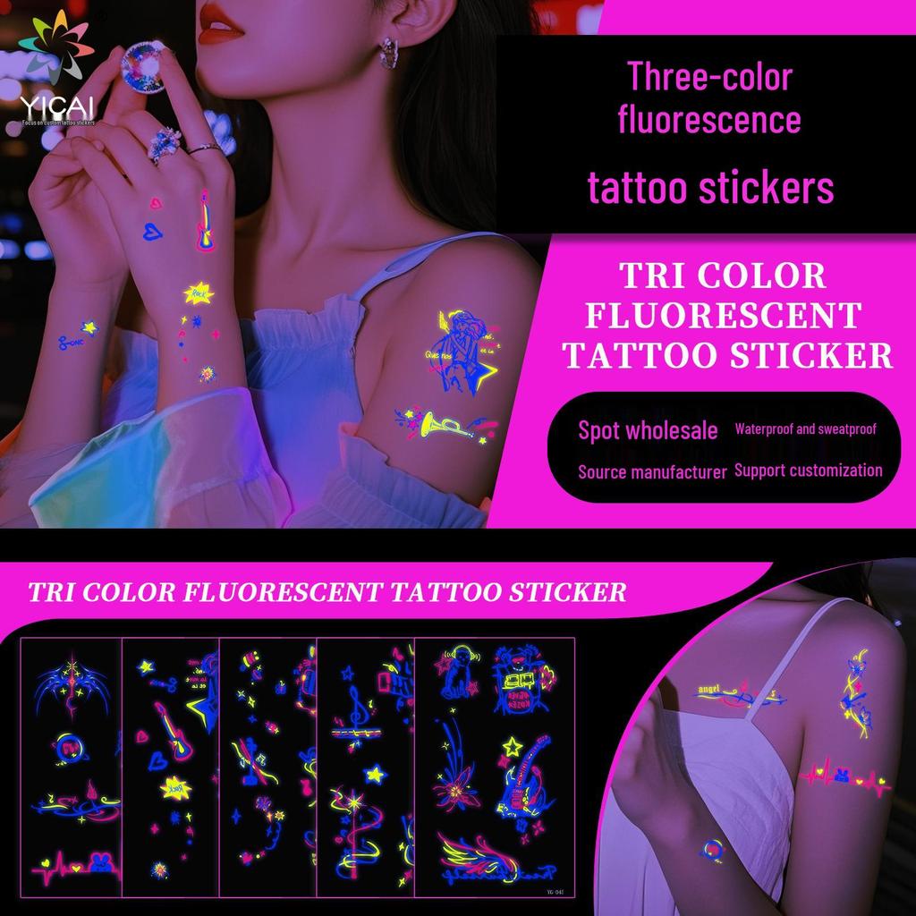 Neon Glow Music Festival Tattoo Stickers: Bright Fluorescent Designs for Concerts and Parties