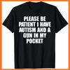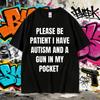 Please Be Patient I Have Autism and A Gun in My Pocket T-shirt for Men Autism Cursed Meme Silly Dumb Saying Short Sleeve Tees