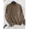 Bowknot Solid Crew Neck Sweater, Casual Long Sleeve Sweater for Fall & Winter, Women's Clothing