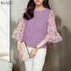 ZANZEA Women Casual Round Neck Summer 3/4 Sleeve Print Blouse