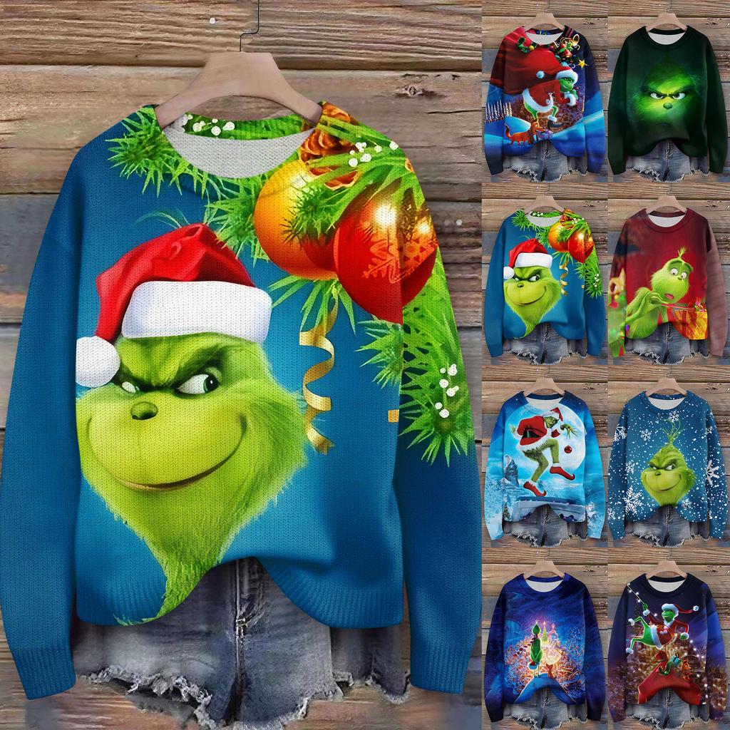 Truien met lange mouwen voor dames O-hals casual schattige print gebreide oversized trui