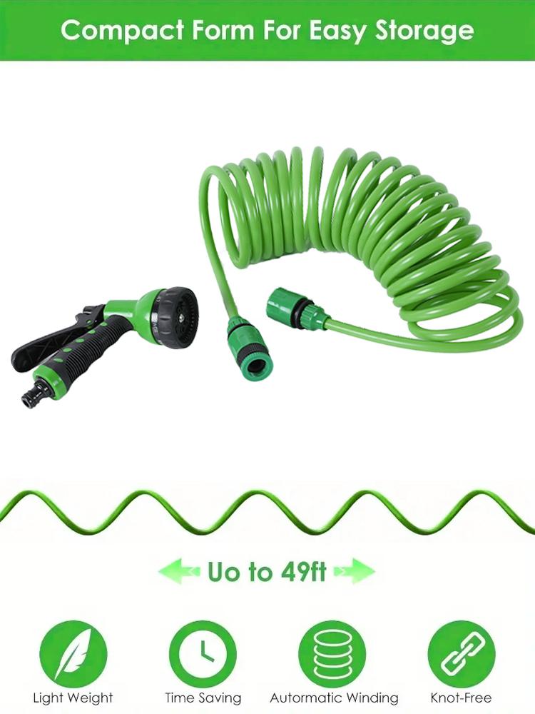 EVA Krul Tuinslang Veer Terugslag Tuinwaterslang met 3/4" Aansluiting met 7 Functie Sproeier voor Huisdier Wassen Auto Wassen
