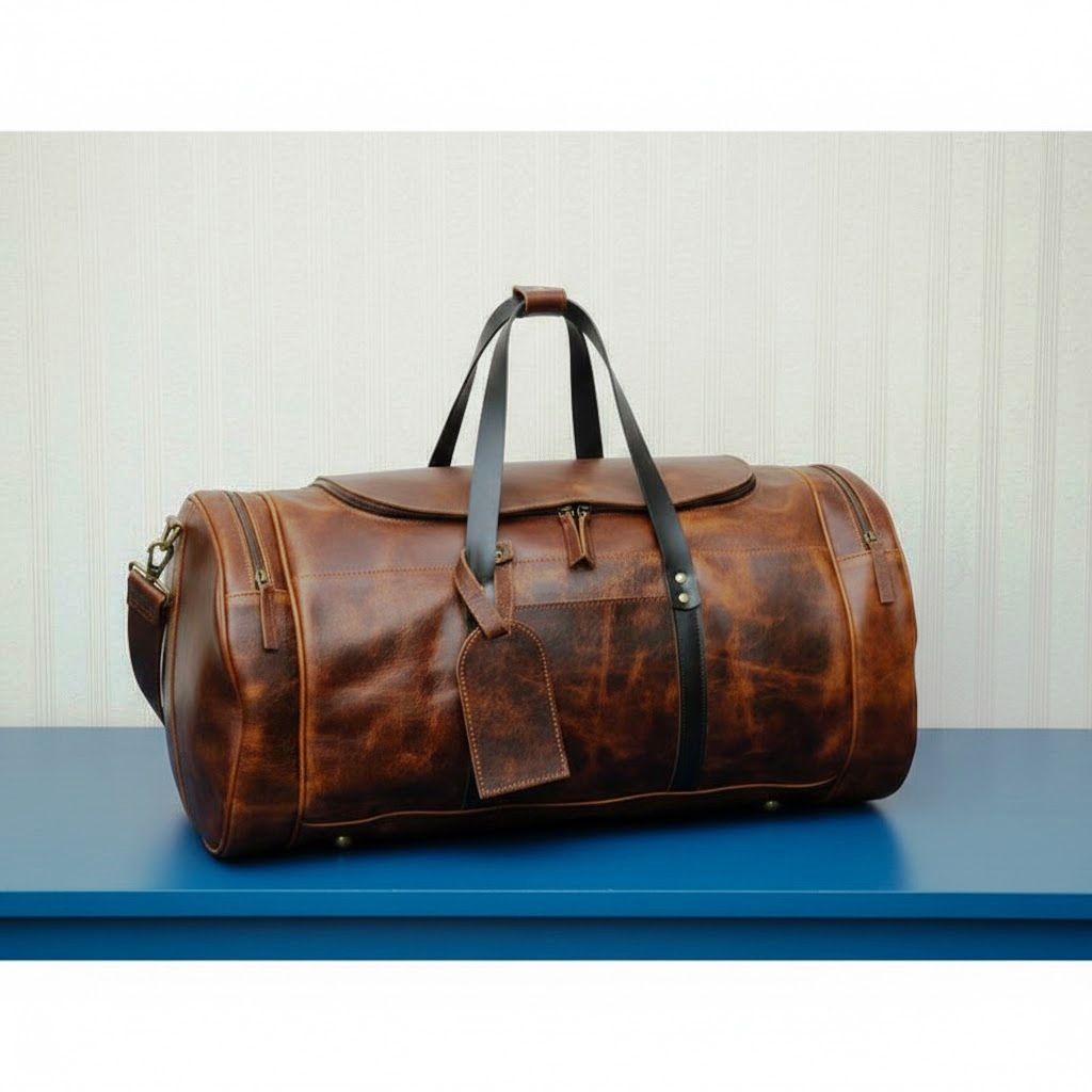 Duffeltas van volnerf leer 24-Handgemaakte heren weekendtas van buffelleer-Schoudertas voor overnachting-Ideaal cadeau voor mannen