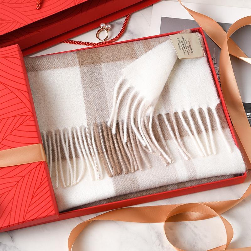 Scarves men's and women's black and white large plaid autumn and winter warm pure wool scarves for friends' birthday gifts