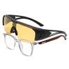 [Gospel for Eyeglass Wearers & Fits Oversized Eyewear] Oversized sunglasses are functional sunglasses that can be worn over glasses. They can be worn directly over or without glasses. The oversized polarized lenses allow for a wide range of eyeglass sizes, making them suitable for people with nearsightedness, farsightedness, and presbyopia. These stylish sunglasses, combined with glasses (glasses and sunglasses), don't feel out of place and will even elevate the wearer's sense of style.