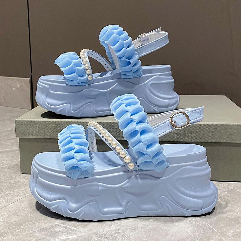 Mode Zomersandalen 8CM Sleehak Sneakers Vrouwen Candy Strand Slippers Hoog Platform Casual Sandalen Ademende Wandelslippers