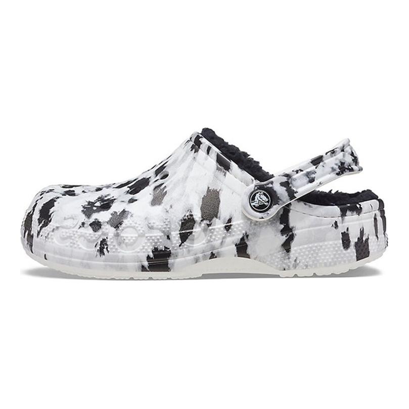 Crocs Baya Lined Clog EVA Printed Round Toe Clogs Unisex clogs White Gray 205975-10M