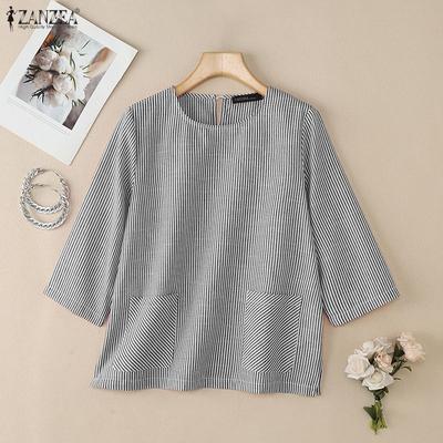 ZANZEA Women Casual Round Neck Loose 3/4 Sleeve Cotton Blouse