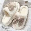 Winter Warme Bontpantoffels voor Dames Schattige Strik Huis Zachte Schoenen Comfort Platte Hak Huis Binnen Slaapkamer Pluche Pantoffels