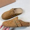 Taizhou grote maat één-pedaal tas hoofd halve pantoffels 2025 nieuwe retro platte zool pantoffels ronde neus suède luie pantoffels