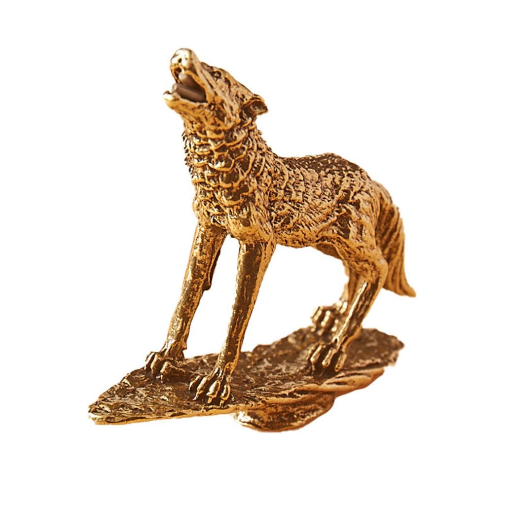 Massief Koperen Wolf Desktop Ornament, Messing Wolf Theehuisdier, Creatief Wolf Totem Handwerk, Vintage Koperwerk