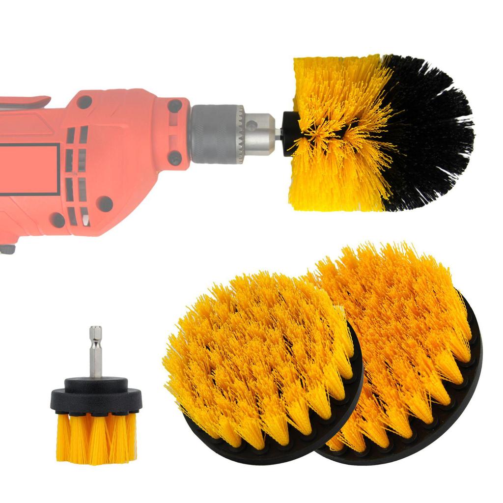 4-Piece Yellow Electric Drill Brush Set for Kitchen, Bathroom, Glass, and Car Cleaning