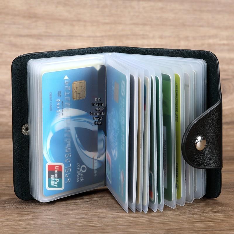 Dames Stijlvolle Kaarthouder van Rundleer met Meerdere Vakken voor Zakelijke Kaarten, Creditcards en Rijbewijs