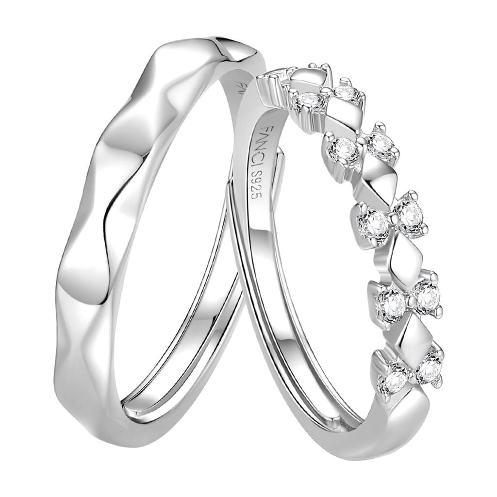 FANCIME Matching Rings for Men and Set of Ribbon Cut Rings with Zirconia and Sterling Silver Sparkling Couples Engagement Wedding White Day