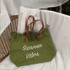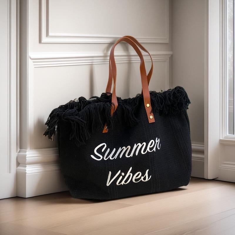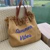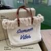 Korean Canvas Embroidered Tote: Versatile Women's Woven Beach Handbag with Tassel
