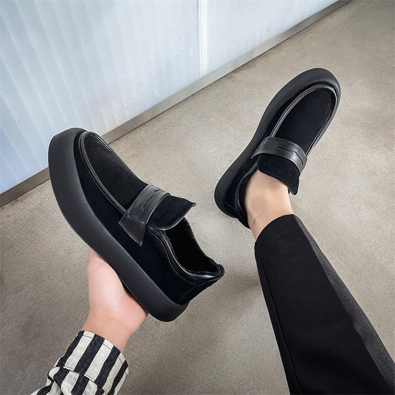 Winter nieuwe leren herenschoenen dikke zool fluweel warme katoenen schoenen één pedaal casual board schoenen dikke zool verhoging