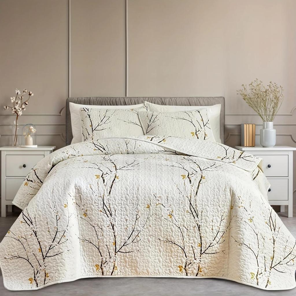 Classic Floral Print Non-Slip, Universal Warmth Bedding Ramadan 3 Piece, Quilted Patchwork Bed Skirt Set