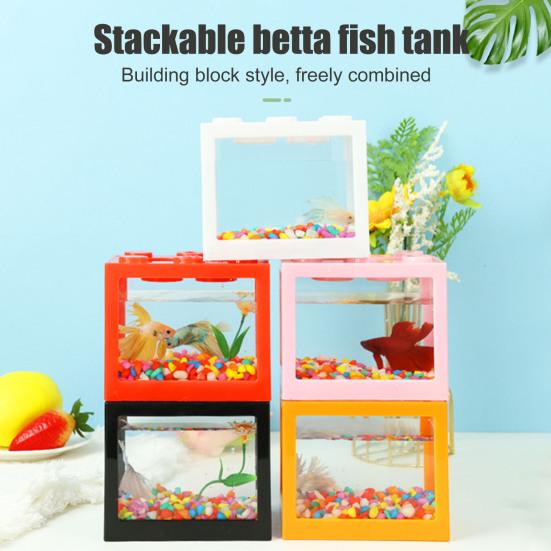This square decorative fish tank features 6 protruding pillars on top, allowing you to stack multiple tanks in different colors to create unique shapes for your table or walls. It serves as a feeding box for miniature aquatic animals like shrimps and small fish, or as an ornamental box for seaweed and moss balls. The transparent design offers a clear view, enhancing home decor and sparking curiosity in children.