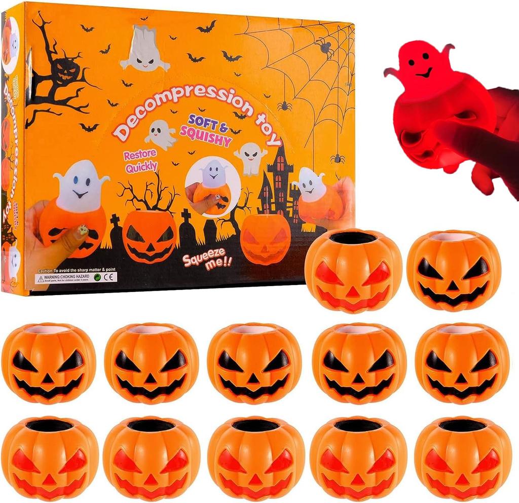 Set of 12 Glowing Pumpkin Ghost Squeeze Toys for Stress Cute Silicone Halloween Party Halloween Cased LED Toys, Halloween, Relief, Prizes, Figurines,