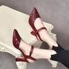 Lente Nieuwe Slanke Hak Comfortabele Puntige Patch Effen Temperament Achterkant Lege Moeder Schoenen Werkschoenen Damesschoenen