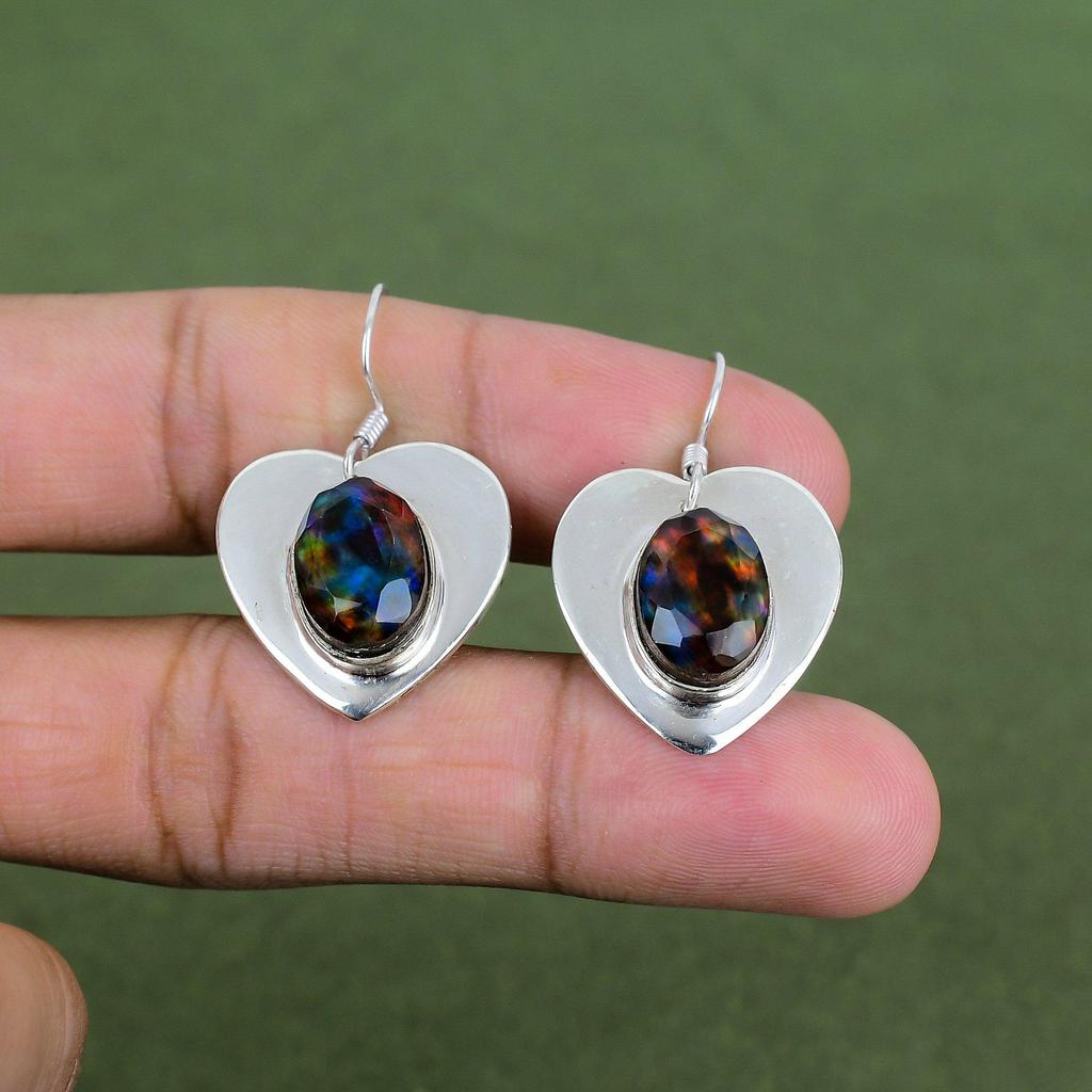 Faceted Ammolite Earring 925 Sterling Silver Earring Antique Jewelry Genuine Gemstone Earring Silver Jewelry Gifts For Wife Handmade Earring