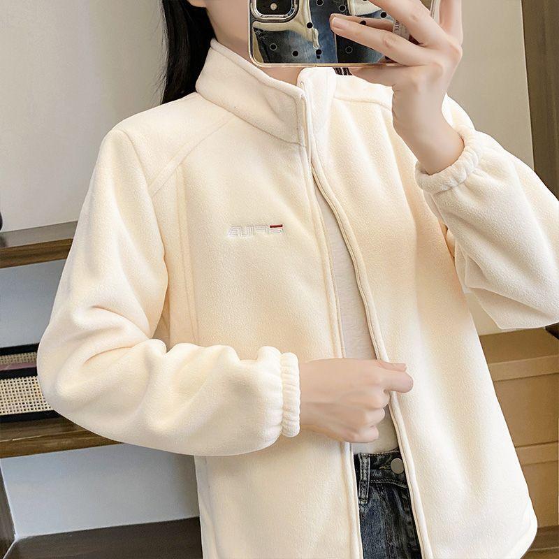 Women's Mint Green Fleece Jacket with Plush Puffer Stand Collar Winter Coat Long Sleeve Zippered Outerwear for Skiing Casual Cold Weather Clothing