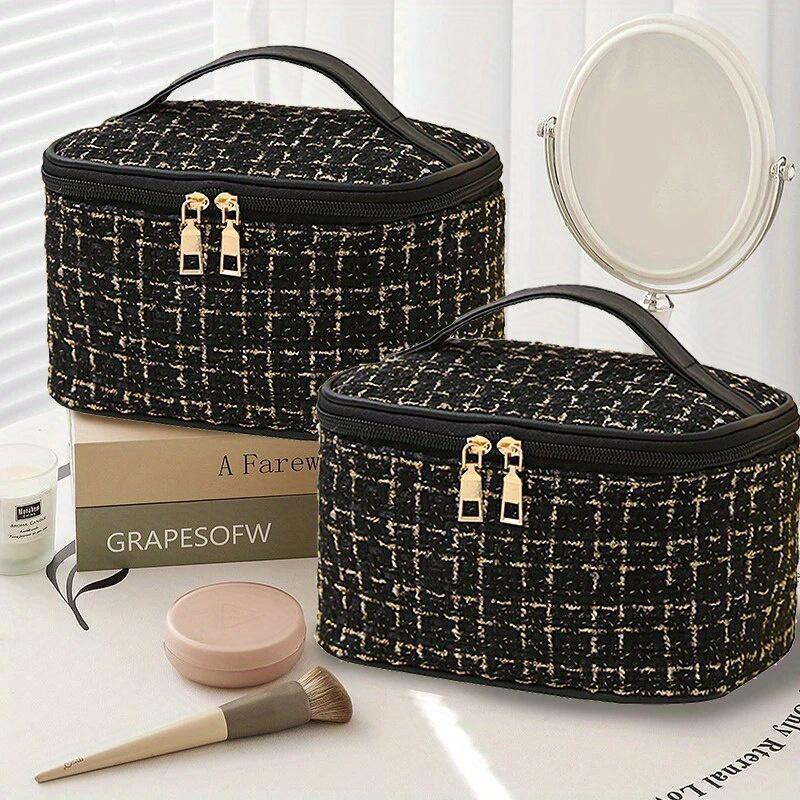 1pc Fashion Cosmetic Bag Large Capacity Portable Handbag Woven Cosmetics Makeup Brush Storage Household Travel Wash Bag
