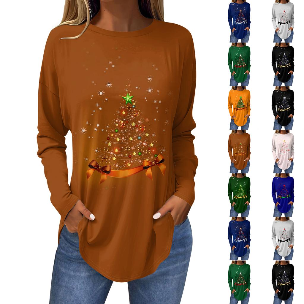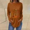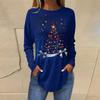 Dames Losse Comfortabele Casual Mode V-Hals Kerstprint Lange Mouw Hoodie