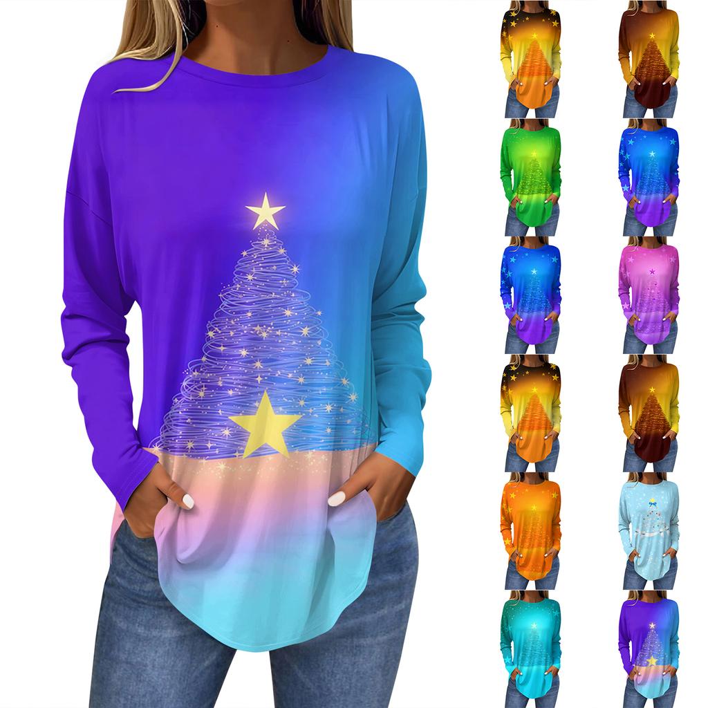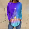 Dames Losse Comfortabele Casual Mode V-Hals Kerstprint Lange Mouw Hoodie