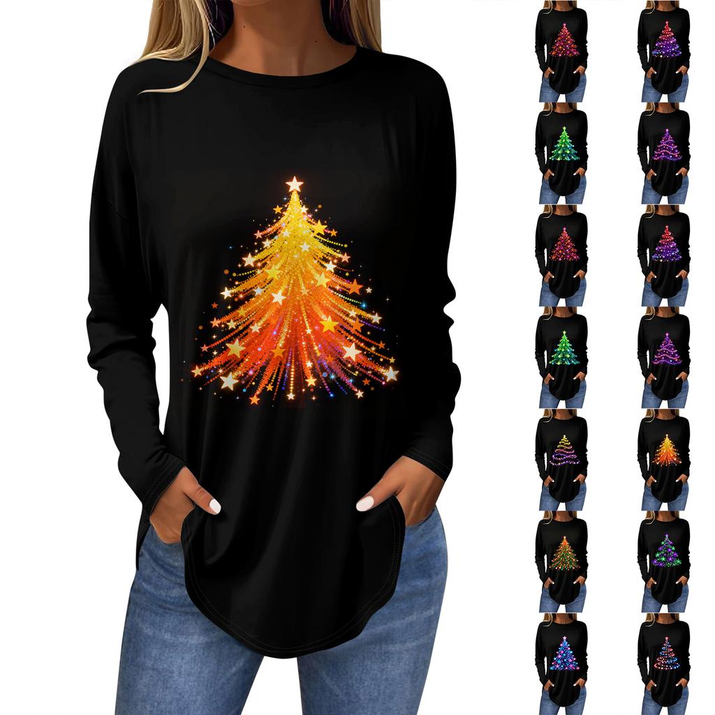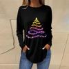 Dames Losse Comfortabele Casual Mode V-Hals Kerstprint Lange Mouw Hoodie