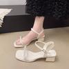 Hot Selling Dames Sandal 2025 Dames Midden Blokhakken Damesschoenen Zomer Nieuw Medium Mode Chunky Hoog Comfort Retro Beige