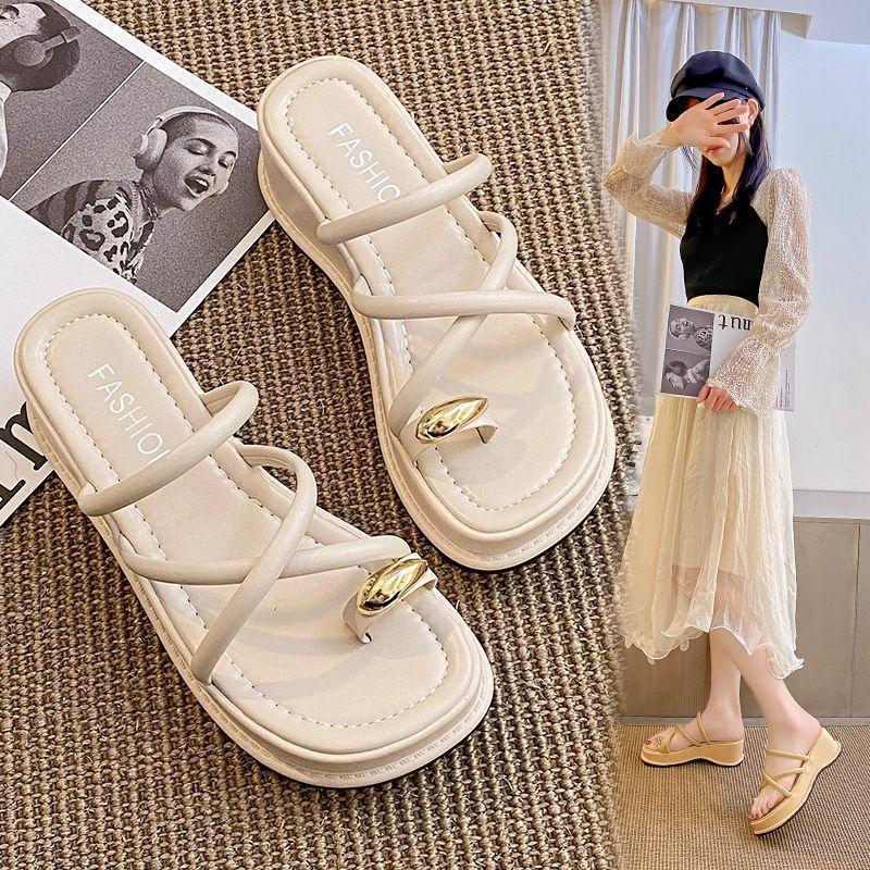 Cool slippers women's summer wear 2025 Internet celebrity explosion toe fashion French platform fairy style niche wedge heel shoes