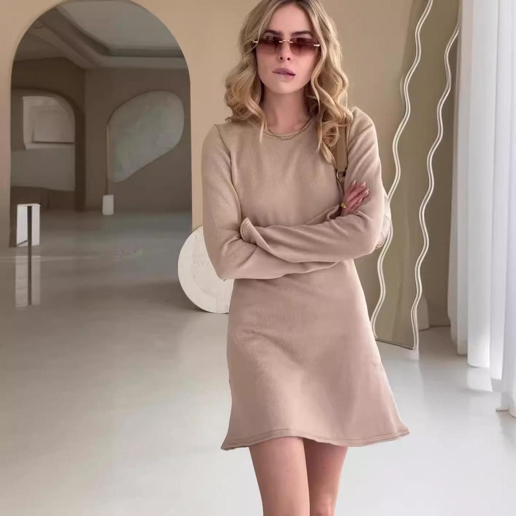 Herfst 2024 Dames Effen Kleur Ronde Hals Lange Mouwen Casual Jurk