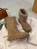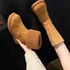 Fashion Warm Fleece Lined Pure Leather Flat Heel Mid-Calf Snow Boots Women's Winter Booties Comfortable Rubber Sole Round Toe Booties